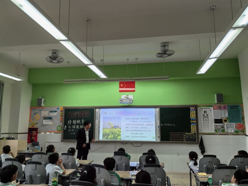 科普讲座中,邢亚阁围绕“认识粮食”“粮食得来不易”“粮食安全影响到国家安全”“爱惜粮食,从我做起”四个方面,通过猜谜语、抢答、一起朗诵、提问等多种方式生动的让同学们了解了常见的粮食作物,熟悉了粮食的来之不易,理解了粮食安全和爱惜粮食的重要性,以及如何爱惜粮食等,启发学生怎么样从认识上和行动上珍惜粮食,赢得全班同学们的热烈反响和响应。