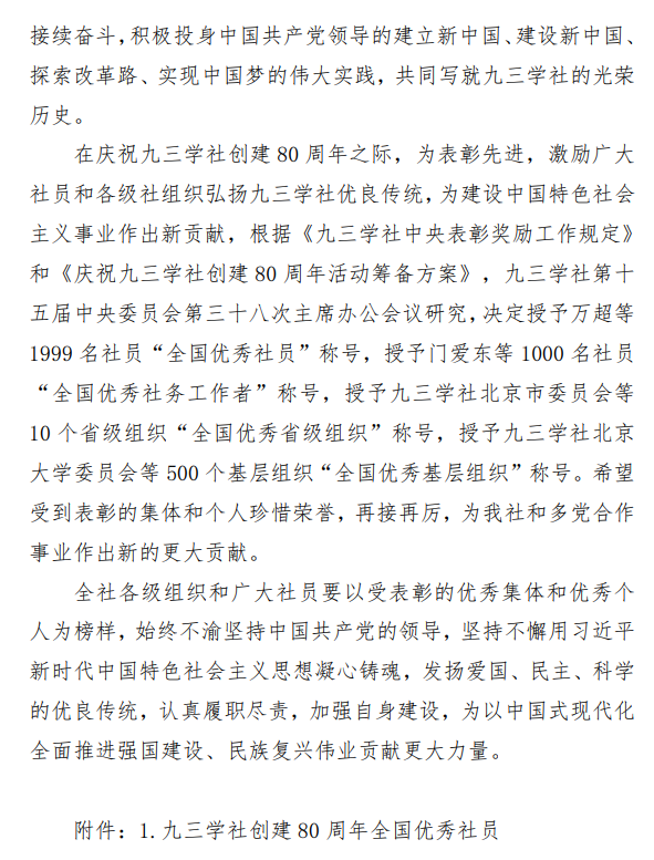 在九三学社创建 80 周年的重要历史节点,九三学社中央近日表彰先进典型,我校九三学社主委、食品与生物工程学院邢亚阁教授荣获“全国优秀社员”称号,成为此次全国 1999 名获此殊荣的社员之一。