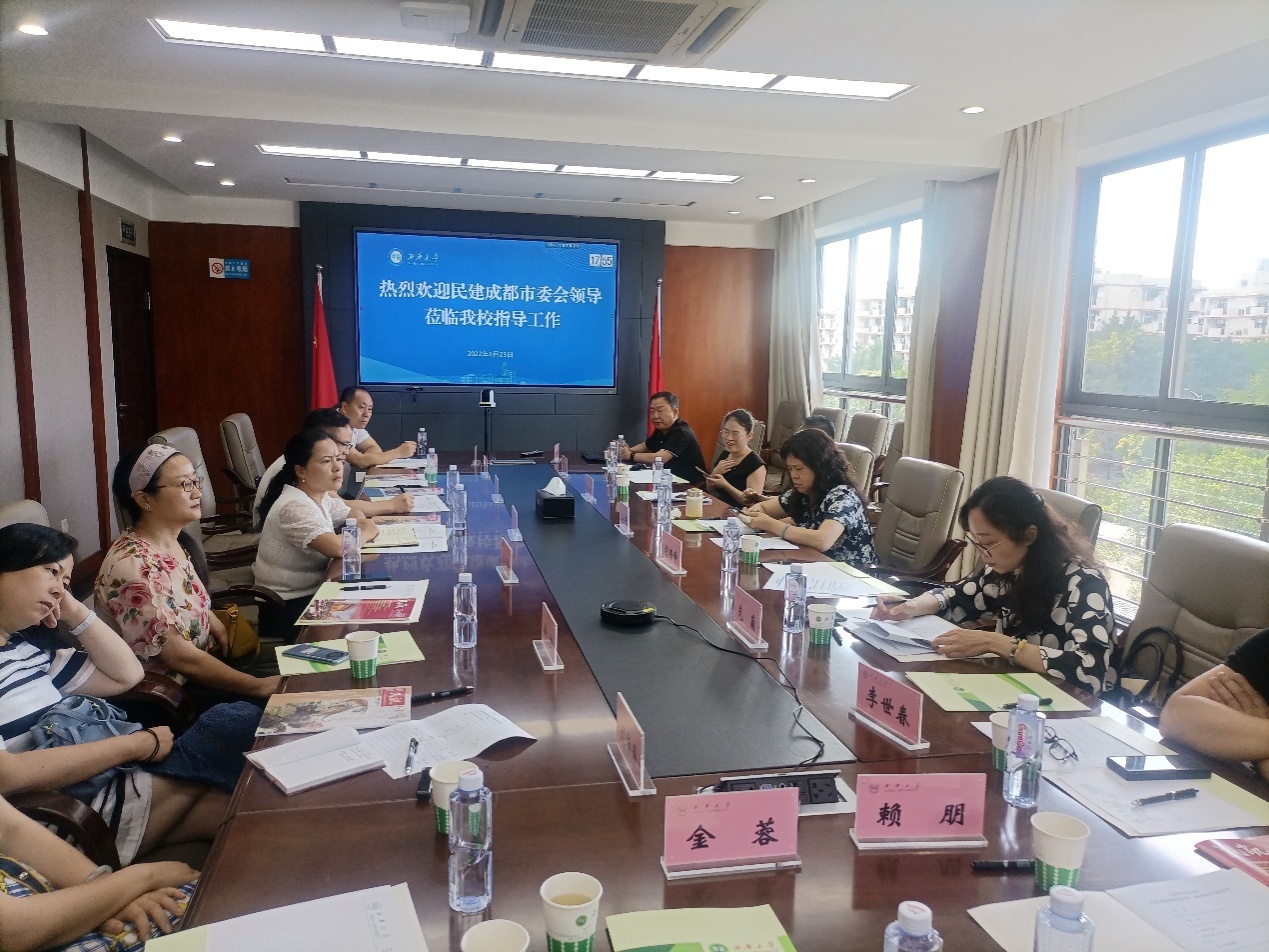 会前,民建成都市委会领导一行与学校党委常委、统战部部长黄进等进行了会谈交流。双方就民主党派高校基层组织履职尽责以及民主党派发挥界别优势促进校地合作等进行了探讨。